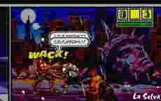 "No es como otros juegos de plataformas o peleas.En este la dificultad abunda,y no es tan tonto como esos que te aparecen 10 mil tipos juntos que se mueren de nada.Aquí aparecen de a 1,son difíciles,resistentes y atacan muy bien con distintos golpes.El jugador también tiene muchos golpes y movimientos especiales,aparte puede agarrar objetos como bombas o cuchillos.Está muy bien ambientado como en un comic,es divertido y las luchas son para destacar una por una."
